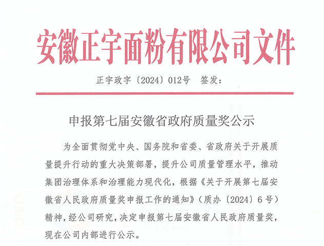 申報第七屆安徽省政府質(zhì)量獎公示
